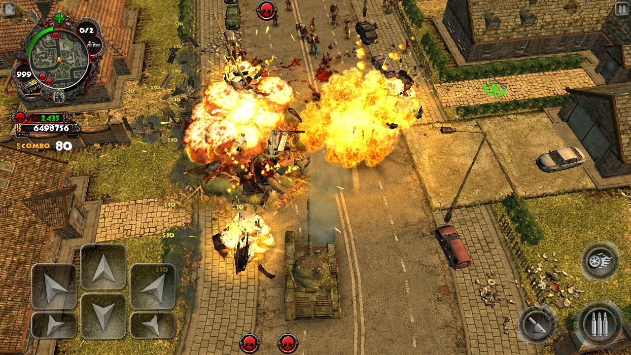 The original game had 17 missions - the HD version has 31 missions with much more gameplay variety. In the HD version, there are multiple different objectives like defending against waves of zombies, epic boss fights, spraying anti zombie repellent, driving special vehicles like the military truck, the tank or the bulldozer as well as bombing missions. The city is a lot more alive in this version because there are moving military vehicles, soldiers fighting with zombies or birds feeding on corpses. A bunch of in game cut scenes tell much more about the story than the previous version did. New enemies have been introduced in the form of zombie spawning infected buses, cargo containers or huge mutated mounds of flesh. The game is a lot more focused on using weapons against zombies which improves the pacing. There is a new Mission Select option that allows to play any mission with any already unlocked car, weapon or upgrade. The minimap is also one of the additions that we made to the HD version along with a large city overview map accessible at any time.